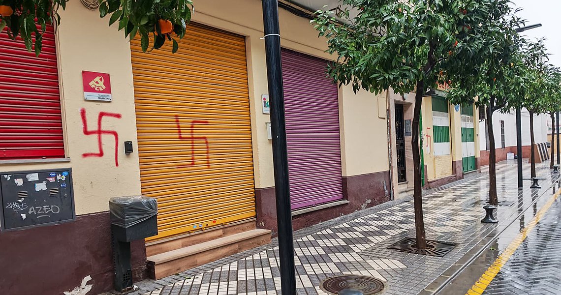 La sede del Partido Comunista de España (PCE) e Izquierda Unida (IU), ubicada en Maracena, ha amanecido este lunes con tres esvásticas pintadas en su fachada. Las formaciones políticas han presentado una denuncia ante la Policía Local, que ya ha iniciado las correspondientes investigaciones sobre unos hechos que podrían constituir un delito de odio conforme a lo establecido en el artículo 510 del Código Penal.